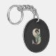 Elegante llavero negro con un monograma botánico dorado con la letra mayúscula S en el centro.