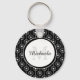 Brinde un toque moderno a su estilo personal con esta elegante cadena de teclados de patrón de franjas monográficas con corazones y círculos negros y blancos y ondulados. Personalice añadiendo su nombre y monogramado inicial al marco de círculo de moda.