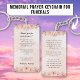 El llavero de oración conmemorativo floral rosa elegante es una forma hermosa y considerada de mantener el recuerdo de un ser querido cerca. Este llavero presenta un diseño suave y elegante con patrones florales rosados que agregan un toque suave de belleza. Los tonos rosados suaves son calmantes y transmiten sentimientos de amor y recuerdo, lo que lo convierte en un artículo conmemorativo ideal.