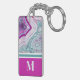 Elegante cadena Verde azulada Magenta de piedra de águila rosa de ácidos rosados. ¡Los cristales y los geodésicos envejecidos siguen siendo una tendencia favorita! Este material impreso y una imagen cercana de una piedra geodésica verde azulada o turquesa y violeta rosa o fucsia, con pequeños cristales y banderas blancas. Con colores vivos que le confieren un aspecto moderno y moderno. Añade tu inicial para hacerlo tuyo.