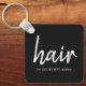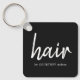 Elegante cadena de teclas en blanco y negro personalizable. Perfecto producto promocional para peluquero. Puedes hacerlo con tarjeta de visita de nuestra tienda.