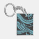 Llavero Elegantes líneas de flujo en turquesa sobre negro