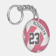 Esta cadena de claves de voleibol funciona como una etiqueta de duffel durante la temporada de voleibol, con su nombre y número de camiseta en la parte delantera y el nombre de la escuela secundaria o de equipo y la mascota en la parte trasera. El color de los paneles no blancos del voleibol se puede cambiar al color de tu equipo, pero se muestra aquí en rosa oscuro - por katz_d_zynes | muchas más combinaciones de colores y estilos de diseño disponibles en la colección de cadenas de voleibol de katzdzynes >> https://www.zazzle.com/collections/119042498553482541