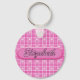 Cadenas de llaves en pequeños patrones de corazones rosados con el nombre de Elizabeth impreso en él.