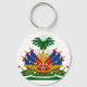 Escudo de Haití. El escudo de armas de Haití se introdujo originalmente en 1807 y ha aparecido en su forma actual desde 1986. En él se exhiben seis banderas del país, tres en cada lado, situadas frente a una palmera y cañones sobre un césped verde. En el césped se encuentran varios objetos, como un tambor, un bugle, pistolas largas y anclas de barcos. Encima de la palmera, hay una gorra frigiana colocada como símbolo de libertad. En el césped entre el tambor y la cinta se suponía que había dos trozos de cadena con un eslabón roto que simbolizaba la cadena rota de esclavitud. La cinta lleva el lema: La Unión Fait La Force (Francés, "Unidad es fuerza"). Esto no debe confundirse con el lema nacional de Haití, que según la Constitución de Haití es "Libertad, Igualdad, Fraternidad".
