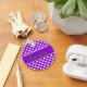 Cortar el llavero con pequeños puntos blancos en fondo morado con el nombre Emma impreso en él.