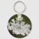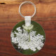 Una hermosa flor doble de Encaje de la Reina Ana contra un fondo oscuro.