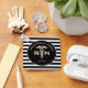 La cadena de teclas RN Nurse Modern Black Gold personalizada hace la idea de regalo de enfermera perfecta. Está diseñado con un símbolo caduceus y "RN" en el centro. El fondo es de rayas negras y blancas. Personalizado con el nombre y con letras manuscritas de moda en blanco. Haga clic en la opción personalizar plantilla y siga el mensaje.