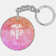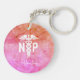 Enfermera Profesional Personalizada Pink Medical Keychain tiene un diseño moderno con un color de agua rosa y naranja oscuro. En el centro se encuentran un símbolo blanco caduceus y "NP" con letras en negrita y blanco. El nombre está escrito en blanco y a la moda con letras a mano. Haga clic en la opción personalizar plantilla e introduzca el nombre.