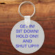 Keychain con un dicho gracioso que a los hombres les encanta decir.