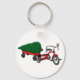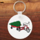 Entrega de árbol de Navidad en un pequeño vagón rojo, estilo triciclo. Un regalo retro muy lindo.
