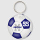 Este equipo colorea el keychain de fútbol para niños o chicas presenta la imagen realista de una pelota de fútbol de estilo tradicional con paneles azules y blancos - personalizar el nombre del jugador, número de monograma y camiseta - de katz_d_zynes