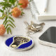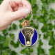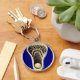 Regalo único de llavero conmemorativo de lacrosse con diseño de palo de lax sobre fondo azul real para jugador, entrenador de equipo o fanático del deporte.