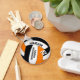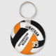 Esta cadena de claves personalizada de voleibol masculino con el nombre del equipo presenta la imagen realista de un voleibol negro, naranja y blanco sobre el que se puede personalizar el nombre del jugador y el número de camiseta más el nombre del equipo escolar y la mascota - por katz_d_zynes