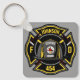 Diseño del Departamento de Bomberos - Emblema con casco y hacha. Personalizar con su nombre, número de estación/departamento y ubicación.