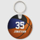 Este equipo colorea la cadena de claves temática de baloncesto para niños o chicas, que presenta la imagen realista de un baloncesto que tiene dos paneles coloreados —uno azul y otro negro— fácilmente personalizables con el nombre del jugador y el número de camiseta - de katz_d_zynes