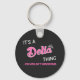 Es una cosa de Delia que no entenderías - tipografía de primer nombre con letras mixtas blancas y rosas. El nombre rosado en el tipo de letra decorativa está enmarcado en blanco y coronado con una corona blanca.