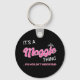 Es algo de Maggie, no entenderías la tipografía de primer nombre con un tipo de letra mixta blanca y rosa. El nombre rosado en el tipo de letra decorativa está enmarcado en blanco y coronado con una corona blanca.
