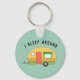 Funny keychain tiene "Me duermo alrededor" personalizable de texto con lindo estilo retro amarillo y verde estilo RV camp con fondo verde . Perfecto para los que aman el estilo de vida de los RV acampando en campings, parques de rv y lugares alejados de la red de suministro, donde estacionar su plataforma en múltiples lugares durante días, semanas o meses es sólo una forma de vida.