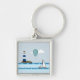 Cadena de teclas metalizado disponible para el personalizar con una escena náutica de un velero navegando en un océano agitado con un globo aerostático sobre la flotación pasó por un faro.