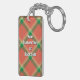 Insignia escudo de sandía rodeada por una correa y hebilla sobre el fondo del tartán. Texto personalizado en ambos lados.