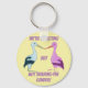 ¡Esperamos, no compartir el género! un divertido llavero para mamá, papá o abuelos que quieren mantener el género en secreto por ahora. Una forma divertida de compartir las noticias. las cigüeñas son azules y rosas.