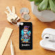 Cadena de teclas personalizada con un ilustracion de un esqueleto humorístico. Vestido un sombrero de cabeza, sosteniendo una bebida. Él tiene una gran sonrisa en su cara. Diversión amable y aterradora para Halloween.