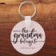 Característica del anillo de claves de guiones de tipografía de corte 'a esta abuela le pertenece'' en letras de moda y nombres de niños en un fondo brillante. Perfecto como regalo para la abuela, nuevas abuelas para el día de la madre, el día de los abuelos, Navidades, etc
