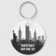 Personalizar estos llaveros de la ciudad de Nueva York en moda para su viaje familiar a la manzana grande. Este moderno keepsake cuenta con un gran dibujo en blanco y negro del perfil de Manhattan y de la Estatua de la Libertad sobre su texto personalizado. Rascacielos Guay de recuerdo para tu viaje.