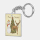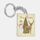 Escena de navidad de estilo vintage con un árbol, un muñeco de nieve y un reno. Este diseño parece realmente efectivo en esta cadena de claves