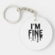 Un diseño gráfico poderoso e irónico que presenta la frase común "I'M FINE" en una tipografía angustiada y bloqueante. La palabra "FINA" se muestra derritiéndose o goteando, simbolizando que el sentimiento es inestable, deshilachador o una mentira usada para enmascarar dolor, ansiedad o profunda tristeza. Perfecto para la conciencia de salud mental, honestidad emocional y expresión cruda.