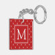 Cadena de teclas personalizada moderna y elegante con un patrón de estrellas blancas en rojo brillante.