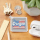 El elegante botón de retroceso de pin cuadrado presenta el estado de la silueta de Oregón con estrellas patrióticas y rayas rellenadas en fondo de papel Kraft gris, y texto de estilo retro. Añade tu propio mensaje o monograma en la parte posterior.