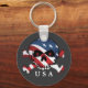 Calavera patriótica y cruces diseñados con las estrellas y rayas de la bandera estadounidense.
