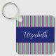 Esta linda cadena de llaves tiene rayas brillantes en tonos precoces de rosa, verde y azul marino. Personalice la parte delantera y trasera con su elección de nombre y texto especial.