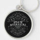 Elegante keychain para los amantes del alcohol casero cuenta con una ficticia etiqueta appalachian Apple Pie Moonshine en blanco/gris claro sobre fondo negro.
