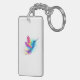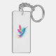 Bright, iridescent, exotic flying hummingbird on white background, painted over with multicolor, watercolor paint. Rainbow hummingbird.