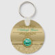 Llavero Faux Emerald Gemstone Metallic Shiny Gold Damask