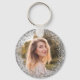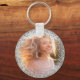 Create your own girly glam round key chain featuring a round faux silver grey glitter border. Customize the font size, style, color and drop shadow settings of the personalized text as needed. The text features a modern handwritten lettering brush style calligraphy script.