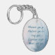 Este keychain de bonito tiene una imagen de clausura de una pluma azul claro contra un fondo borroso de colores pastel y un dicho de una persona desconocida: Donde sea que vayas Lo que hagas, tu ángel de Guardian te vigilará.