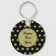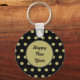 Que tengas un feliz año nuevo... con estilo vintage... Un fondo negro con puntos de polka dorado... un círculo dorado con letras negras y acentos grises oscuros... dice... "Feliz Año Nuevo"... Buena idea de regalo... un gran obsequio... un favor de fiesta... para los Navidades o la víspera de Año Nuevo... o añadir un toque de espíritu de vacaciones a sus propias llaves...
