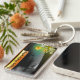 "Halloween feliz" está impreso en este cartel, y una casa embrujada está iluminada en el fondo. Se ve a una bruja y un fantasma volando por la noche y un gato negro está sentado en el cementerio. Una flor de Halloween amarilla y roja está en la parte delantera del diseño. Estas cadenas de claves están disponibles en diversos estilos y tamaños.