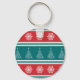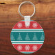 Feliz ilustracion navideño con árbol de Navidad y decoración de copos de nieve sobre fondo rayado rojo, blanco, azul y turquesa