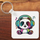 Llavero Feliz Panda con auriculares escuchando música.
