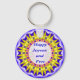 Cadena de claves con diseño de mandala circular y texto Feliz alegría y libre. Puede personalizar agregando su propio texto Se crea artísticamente.