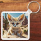 Un lindo zorro Fennec se sienta elegantemente en el desierto, sus grandes orejas y su suave piel atrapando la luz dorada del sol. Esta pequeña criatura encantadora le da un toque de calidez al vasto paisaje árido. "Imagen original generada por Meta AI. La IA generó obras de arte. Con licencia CC BY-SA 4.0.