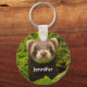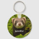 Cadena de llaves personalizada con una adorable fotografía que muestra un pequeño hurón marrón parado en un pasto largo. ¡Cuidado como puede ser!