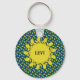 El diseño de la fiesta de cumpleaños de Cowboy gorra en verde azulado y dorado, presenta las obras de arte dibujadas a mano de WindyDesign en una cadena de llaves, un artículo perfecto para la bolsa de oro.