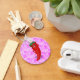 Un personaje de dibujos animados de pimiento rojo y picante. Diseño original con patrón de encaje rosa en el fondo.