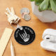 Fans del metal, este es para ustedes. Ya sea que amen el death metal, heavy metal, thrash metal o black metal o algo intermedio, este botón de recuerdo personalizado para la fiesta de soltera con mano de rock está listo para subir el volumen de su estilo. Robe la atención con este diseño de mano esquelética de rock que seguramente agregará un acento roquero a su personalidad y fiesta con las chicas antes de decir "Sí, acepto".